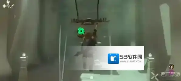 步骤三:飞过激光阵后,往箭头所指的洞中跳,借助风和滑翔伞调整位置。