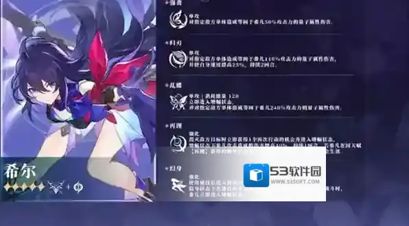希儿是量子属性的输出角色,打击面相当广泛。
