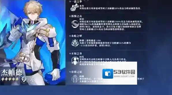 杰帕德是最强5星肉盾角色,战技提供了冰冻概率,提升了控场效果。