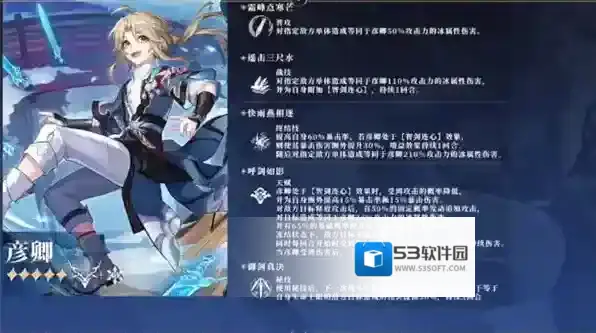 彦卿的技能组提供了非常可观的暴击与爆伤加成,可以打出极高的单体爆发伤害。