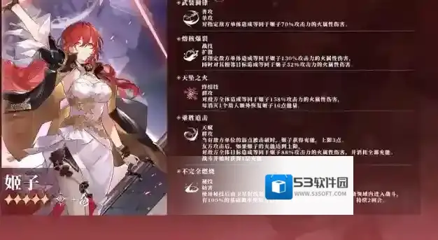 虽然姬子的群体输出能力优秀,不过她的对单能力比较缺乏,在攻坚中需要依靠单体输出队友补齐。