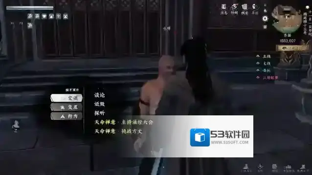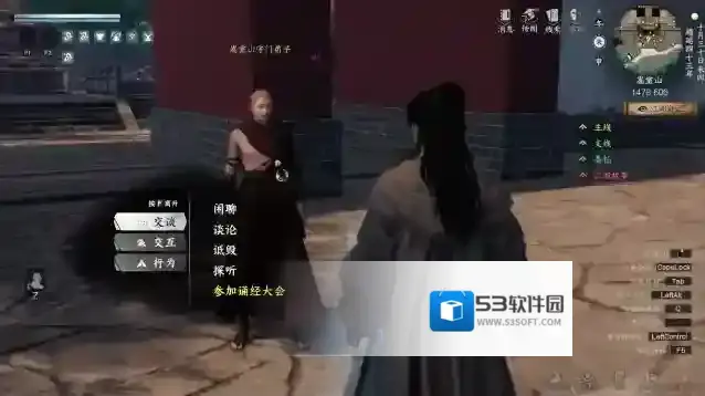 三个选项拜师任意选一个,然后会自动来到师傅旁边,交谈师傅修行后来到嵩室山守门弟子参加诵经大会
