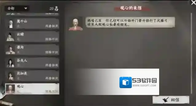 跟随指引到交谈悲慧出现选项,选择给不同劣级拳法后加入嵩室山