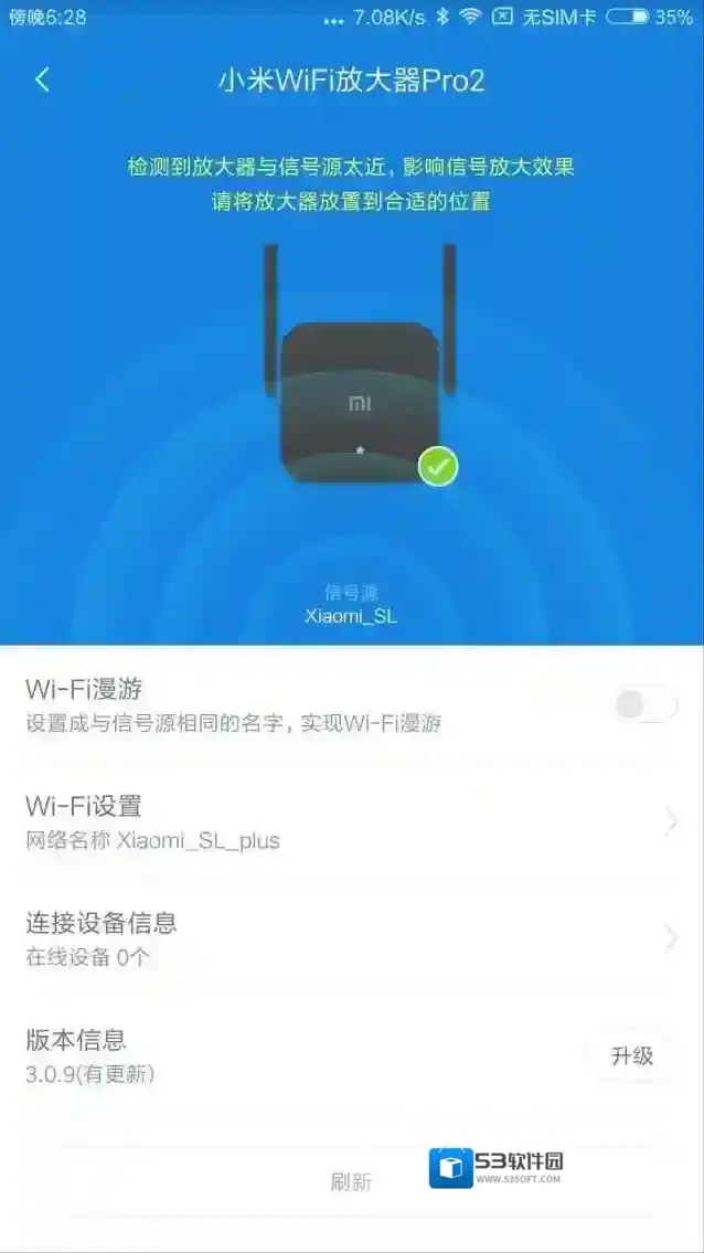 可在米家APP中点击小米WiFi放大器后,设置漫游(把小米WiFi放大器的WiFi信号设置成和主路由器信号的名称一样)。