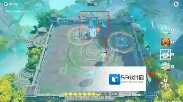 选择场上目标,使用火蕈兽的战技,一次性带走相对聚集的棋阵机关。(后续步骤相似,不再多做说明)