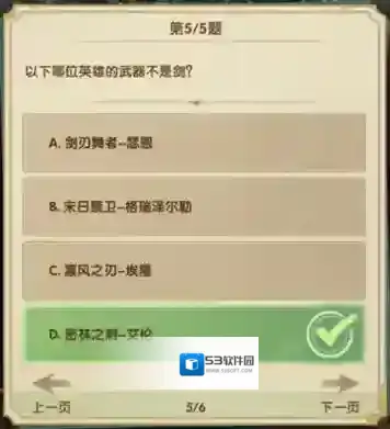 5、以下哪位英雄的武器不是剑?
