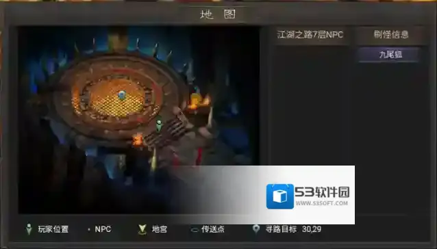 江湖之路一共7层,每层都有若干不同种类的怪物,需要清完当前层数的所有怪物才能前往下一层,每个怪物都有概率掉落对应的图鉴,每层的boss大概率会掉落合成应龙神甲材料。如果想精准打某个怪物的话,可以点开地图点击刷怪信息里的对应怪物就能自动寻路过去。