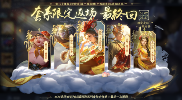 2、本次返场抽奖为86版西游系列皮肤。