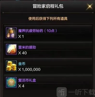 1、玩家可以在商城-礼包中获取冒险家启程礼包。