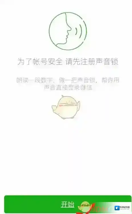 8、为了账号的安全,需要注册声音锁,点击开始,然后按住声音录入按钮并读出数字。