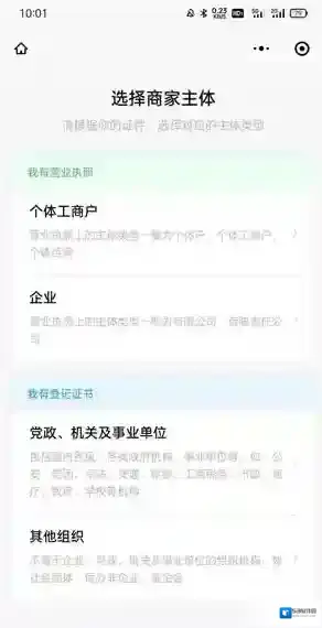 5、同意授权个人信息、头像后,选择需要申请注册的商家主体,根据自己的情况选择;