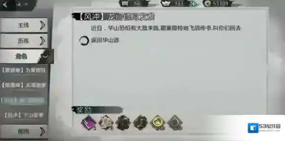 16,返回华山,开启剧情,君不器走火入魔,后山将其击败,岳mm 挡刀,将死。