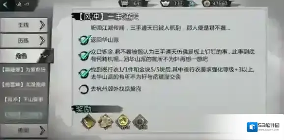 5,在华山和岳mm对话,准备去杭州冒充三手通天,帮君不器洗脱罪名。准备夜行衣+3(杭州本杰明处购买),金块5个。