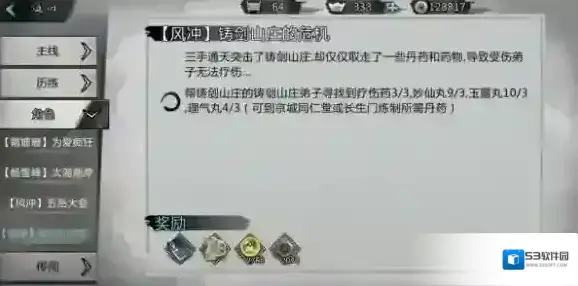 分支任务:先后去恒山长生门、泰山铸剑山庄。铸剑山庄弟子要的药在恒山炼丹炉炼。再依次去恒山,黑月崖而后岳黛颖自爆三手通天身份,