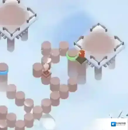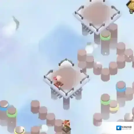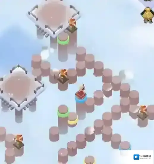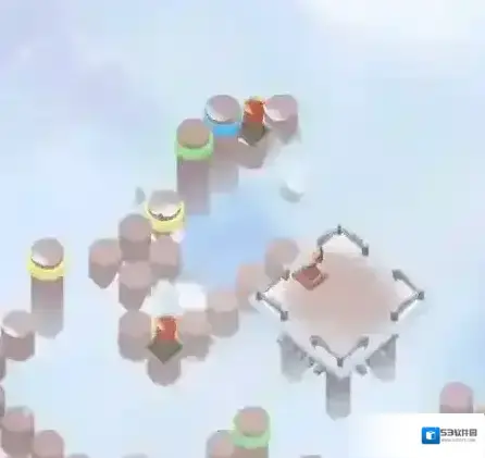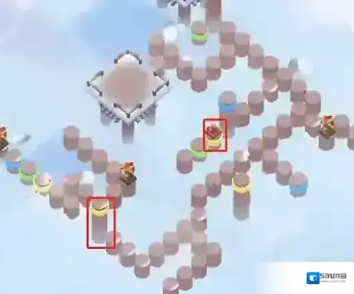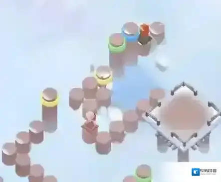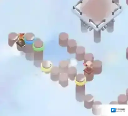 然后如下图所示,我们需要注意的是,需要踩到中间的黄色柱子上,保证图片左侧的黄色柱子是升起的状态,为后面打通路。