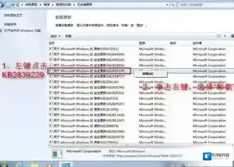(2)按下图操作卸载已经安装的 KB2839229、KB2838727 补丁后并删除C:WindowsSoftwareDistributionDownload下的所有内容后重启即可,如图: