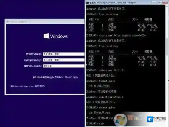 8、分区过程中和结束后,可以执行一下list partition,随时看一下已分配分区大小;也可以在每个逻辑分区创建完毕后顺便执行format quick,进行快速格式化