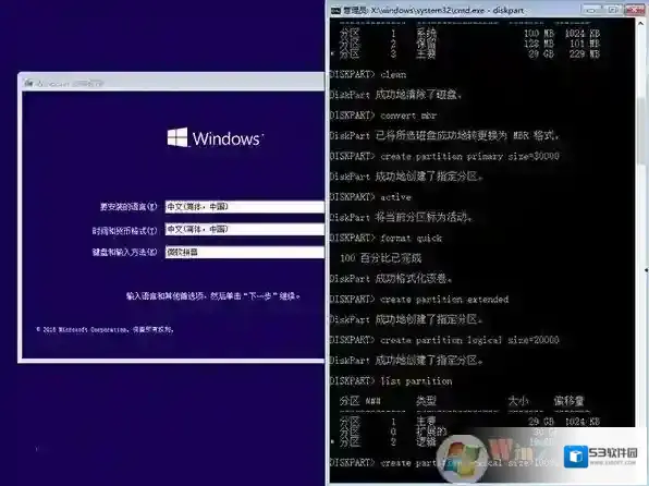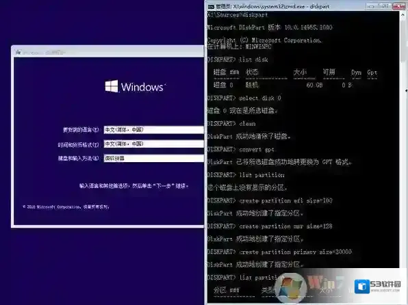 使用原版Win7/Win8.1/Win10系统盘引导电脑,按shift+F10调出命令提示符,输入diskpart进入分区程序(如上图),相关命令说明如下: