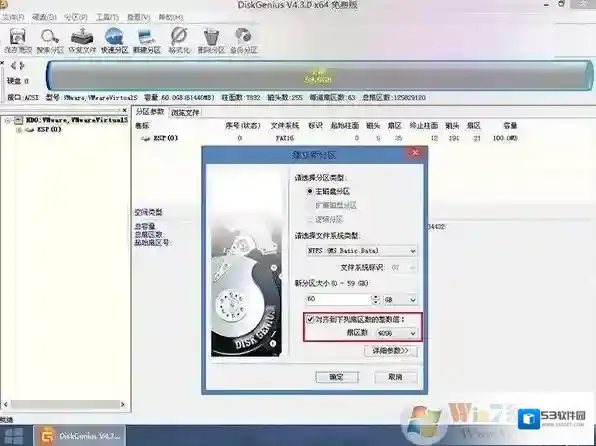 提示:如果是为SSD新建分区,要勾选“对齐到下列扇区数的整数倍”,并在“扇区数”下拉菜单中选择“4096”(如上图),以便满足所谓的“4K对齐”条件,这有利于充分发挥SSD的性能优势(原版系统盘安装程序分区时会自动设置“4K对齐”,无需手动设置)。