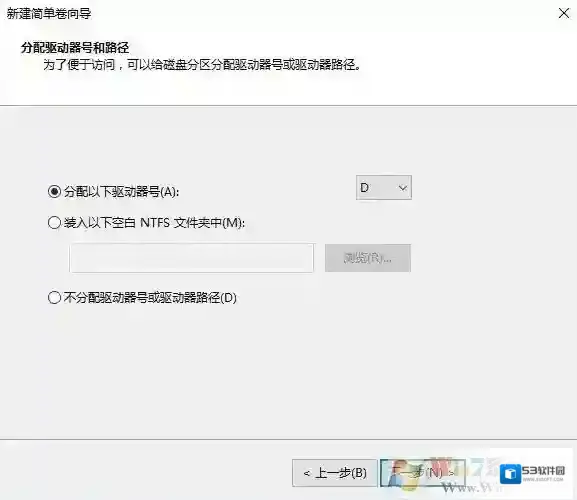 5、分配驱动器号,凡是没有使用过的字母你都可以用,当然是用系统自动分配的最省事;你也可以把这块区域以文件夹形式合并到现有分区中;也可以不给正式“名号”,用于其他目的,如下图 :