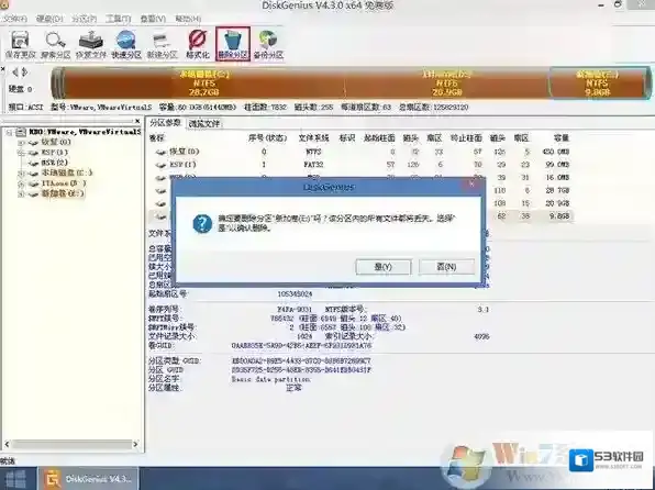 2、如果现有分区你并不满意,可以删掉后重新分,如下图