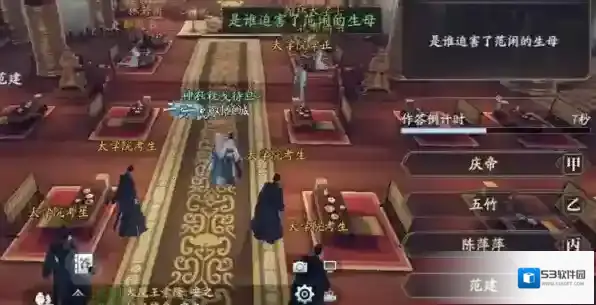 金殿对策,常驻型五轮答题任务,会提一些《庆余年》相关的问题,比如说“是谁害死了范闲的生母?”,有时则会出现“《伤寒杂病论》是谁写的?”,“过五关斩六将的是谁?”之类的历史问题。得益于弹幕系统的存在,即使不懂原作的相关知识,利用其他玩家发的弹幕也可以获得正确答案哦!