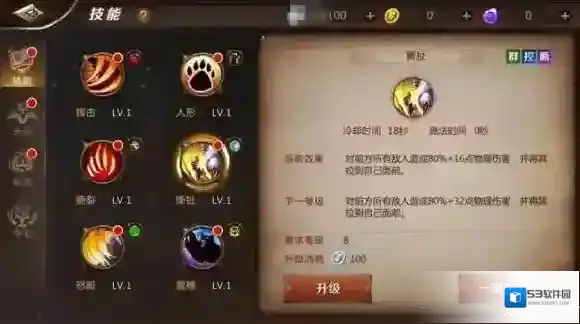 解析:作为人形态的守护者,爪击作为主要的输出技能,5级就能够造成153%+153点物理伤害。