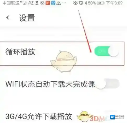4、在设置页面点开循环播放按钮。见下图