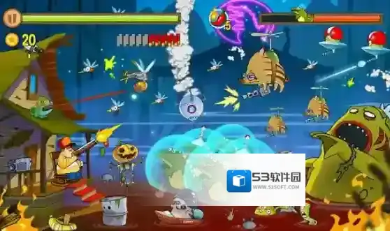 沼泽激战(Swamp Attack),充满了美式夸张风格的一款2D横版射击塔防游戏。游戏中的主人公生活在一片森林中,在他的小木屋周围有一片沼泽,沼泽中有着许多动物,随时都准备来围攻小木屋,玩家需要扮演主人公,拿起手中的枪械来保护小木屋,守住自己的领地!游戏诙谐幽默的风格正是吸引人的特色之一,例如主角虽然深陷包围,却也是从容的坐在小板凳上悠闲打靶,而且手持各种武器还会出现不同的呆萌表情,非常的有趣。游戏内有着丰富的关卡可以去挑战,并随着挑战还能用金币去升级武器提升战力,迎接更多的挑战!