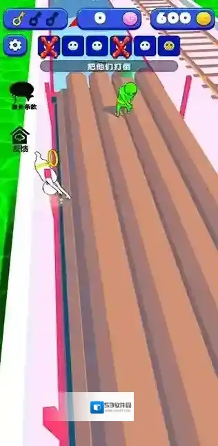 3、打倒敌方人物,然后拖拽它将它丢出去