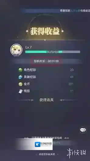 5、闯关结束后,不要忘记返回主界面领取挂机宝箱,通关越多、挂机时间越长,奖励就会更加丰厚。
