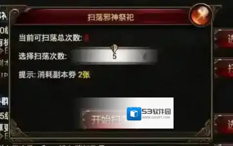 如图所示:副本界面有个扫荡按钮,选择需要完成的次数,点击之后,即可完成副本,领取经验和奖励,提示一瞎小伙伴们注意把背囊的物品清空一下,不然就无法完成扫荡。