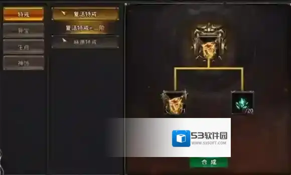 二、合成系统说明:合成系统可从游戏右下方合成入口进入。合成系统初始只有四部分,分别是特戒、异宝、生肖、神饰。