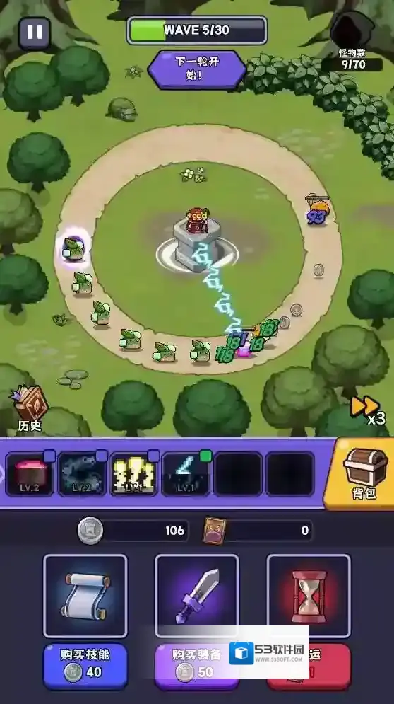 2、进入关卡后角色会自动攻击敌人,击败敌人可以获得银币。