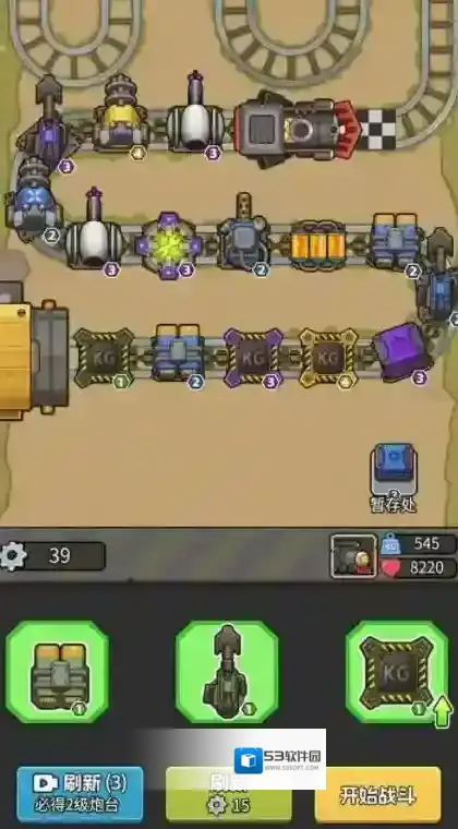 2、进入关卡后玩家需要将炮塔放在火车车厢上,相同的炮塔可以合并来提升等级。
