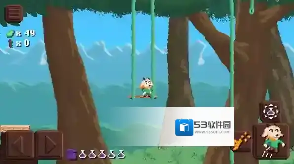 4、在前进过程中会遇到一些在空中的点,跳起来使用绳索就可以在这些地方荡来荡去跨越障碍。