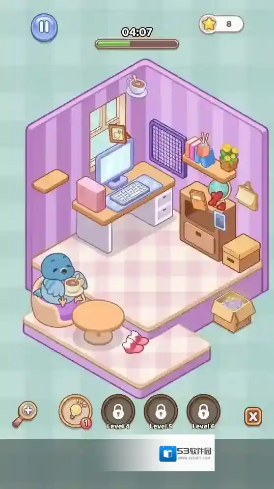 4、每关都会有不同的时间限制,在有限的时间内放置所有家具就可以通关。