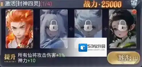 战力:25000、提升:所有仙将攻击伤害+1%,神力+10。