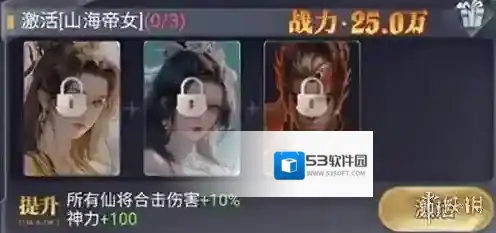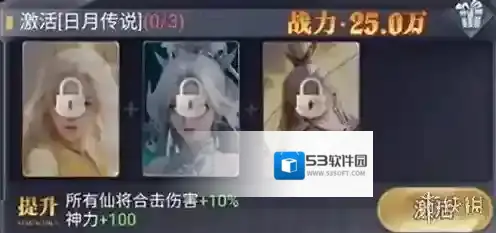 战力:250000、提升:所有仙将合击伤害+10%,神力+100。