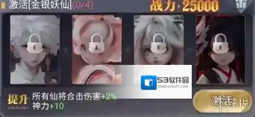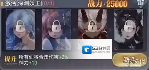 战力:25000、提升:所有仙将合击伤害+2%,神力+10。