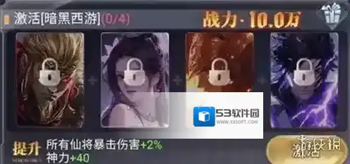 战力:100000、提升:所有仙将暴击伤害+2%,神力+40。
