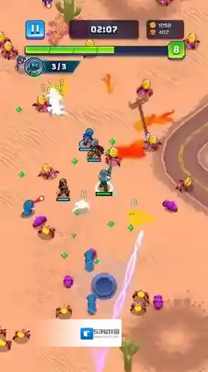 2、进入地图后滑动摇杆可以控制角色移动,角色会自动攻击出现的虫子。