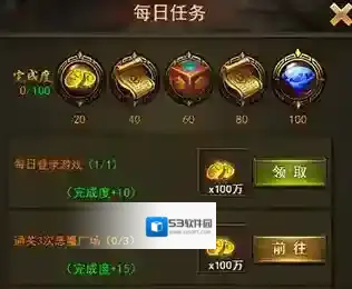 每日可接取一轮任务,完成指定目标,可获得奖励。