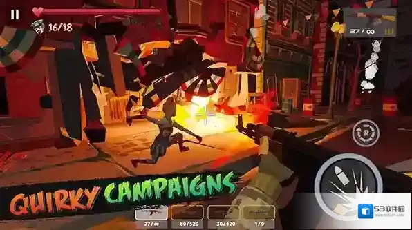 4、卡通化视觉表现,以轻松画风呈现紧张刺激的僵尸题材,降低恐怖元素适合更多玩家。