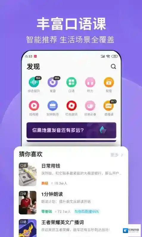内置来自硅谷前沿语音识别技术,给你的英语口语实时打分,矫正发音。