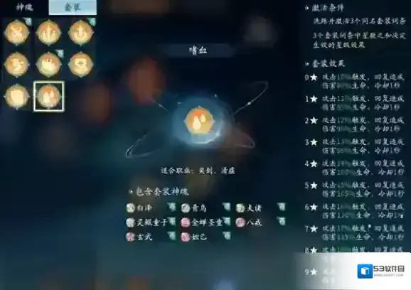 4、嗜血神魂是一块适用于防御位替补的神魂,当攻击触发时,有10%的概率回复造成伤害的一定比例生命值。