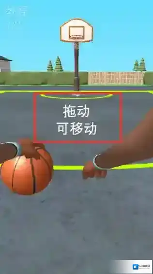 2、教程阶段,按提示拖动可移动篮球,调整投篮角度、力度,熟悉操作机制。