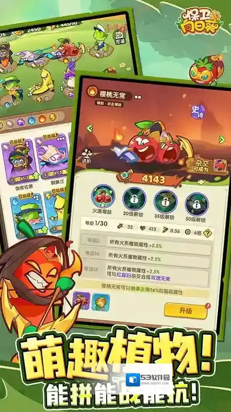 4、关卡解锁后,将面临更具挑战性的僵尸敌人,也能收集到功能各异的植物伙伴。