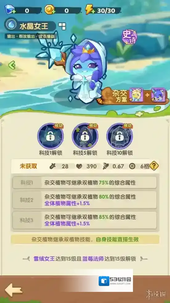 输出型与辅助型植物应先提升至15级,以增强其基础属性。